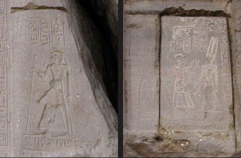 Another important relief here depicts a list of four Heb-sed festivals of Rameses II in the 30th, 34th, 37th and 40th years of his reign, which were supervised by his eldest son, Prince Khaemwaset. This prince, renowned for his priestly wisdom as well as his restoration works, appears in several places in the chapel, along with his mother Queen Asetnefert and Princess Bentanta, as well as other favoured officials of the reign. Khaemwaset presumably died before the 42nd jubilee of Rameses II was celebrated at Gebel Silsila as this was conducted by the Vizier Khay, who also has a presence in the speos. Merenptah, the son and successor of Rameses II is depicted on a stele with his wife Asetnefert and his Vizier Panehesy adoring Amun-Re and Mut.